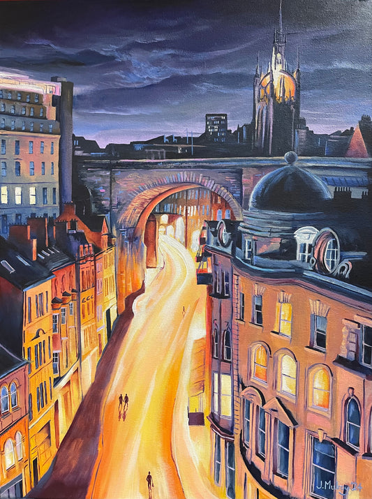 ‘City Lights’ - The Side, Newcastle-upon-Tyne; Original Acrylic on Canvas - Framed.
