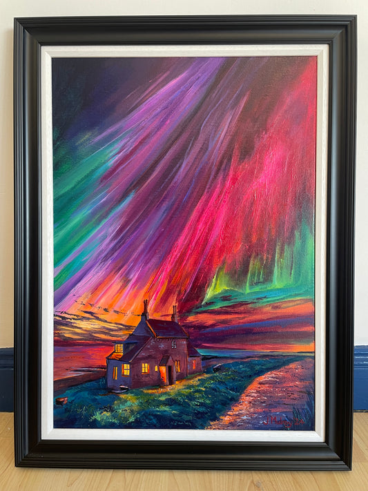 ‘Howick bathing house under the Aurora’ - Framed Original Acrylic on Canvas